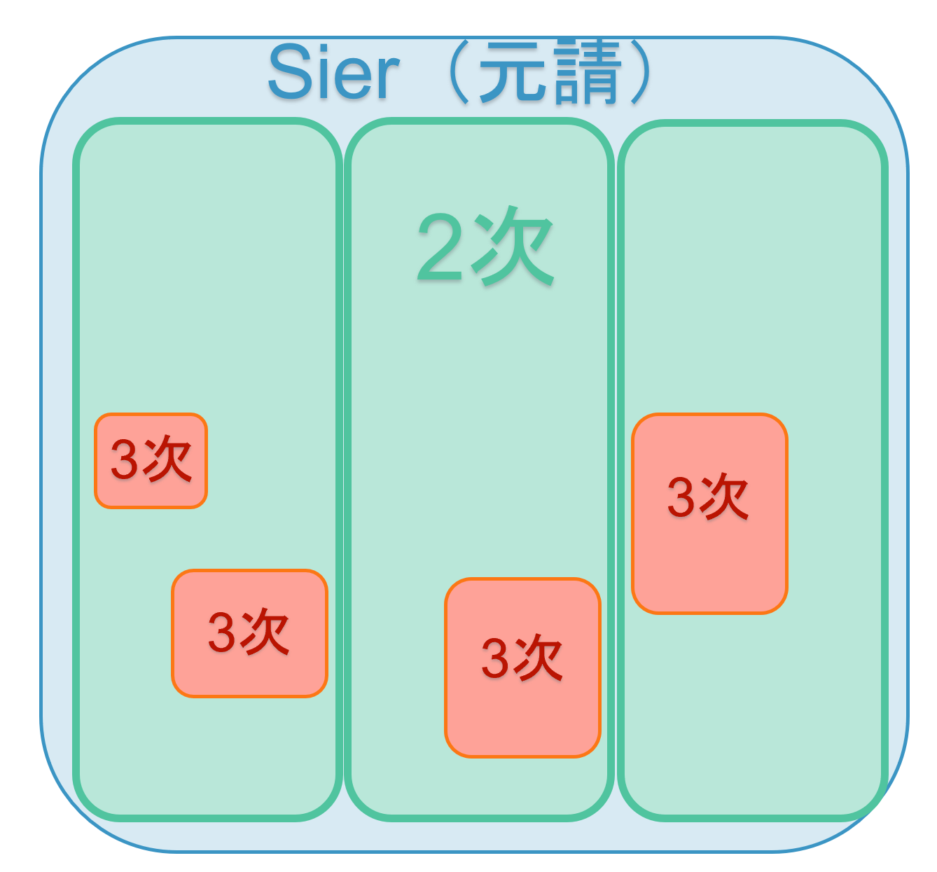 上記では経験3年くらいのPGリーダーを例に挙げましたが、責任範囲によって関与する人月数も変われば、生み出せる可能性のある人月数も変わります。下記の図はよくあるSIプロジェクトの体制ですが、元請・2次請・3次請。それぞれのリーダーが責任を負う範囲は変わりますよね。
